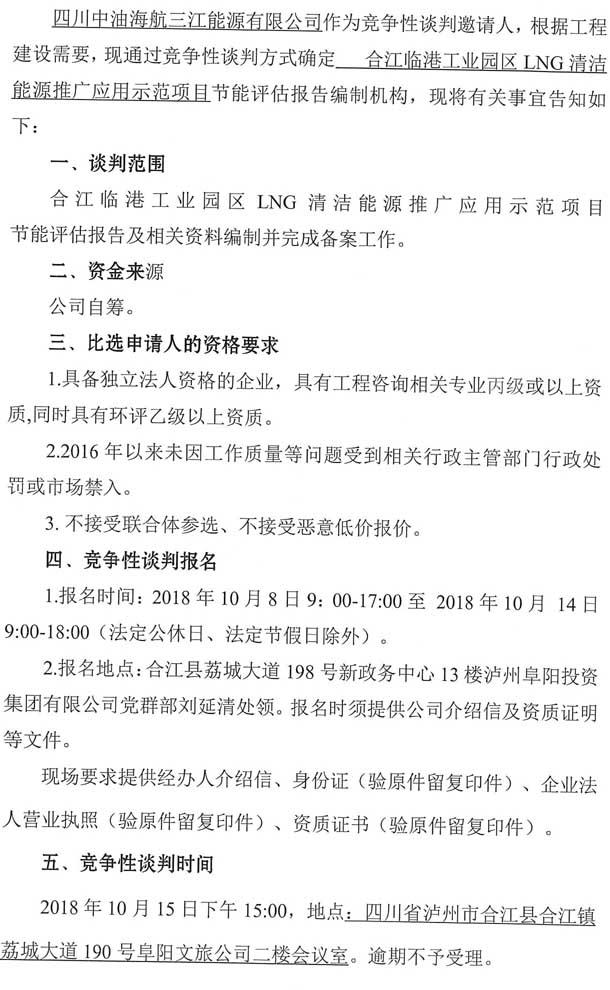 合江臨港工業(yè)園區(qū)LNG清潔能源推廣應(yīng)用示范項(xiàng)目節(jié)能評(píng)估報(bào)告編制單位競(jìng)爭(zhēng)性談判公告.doc